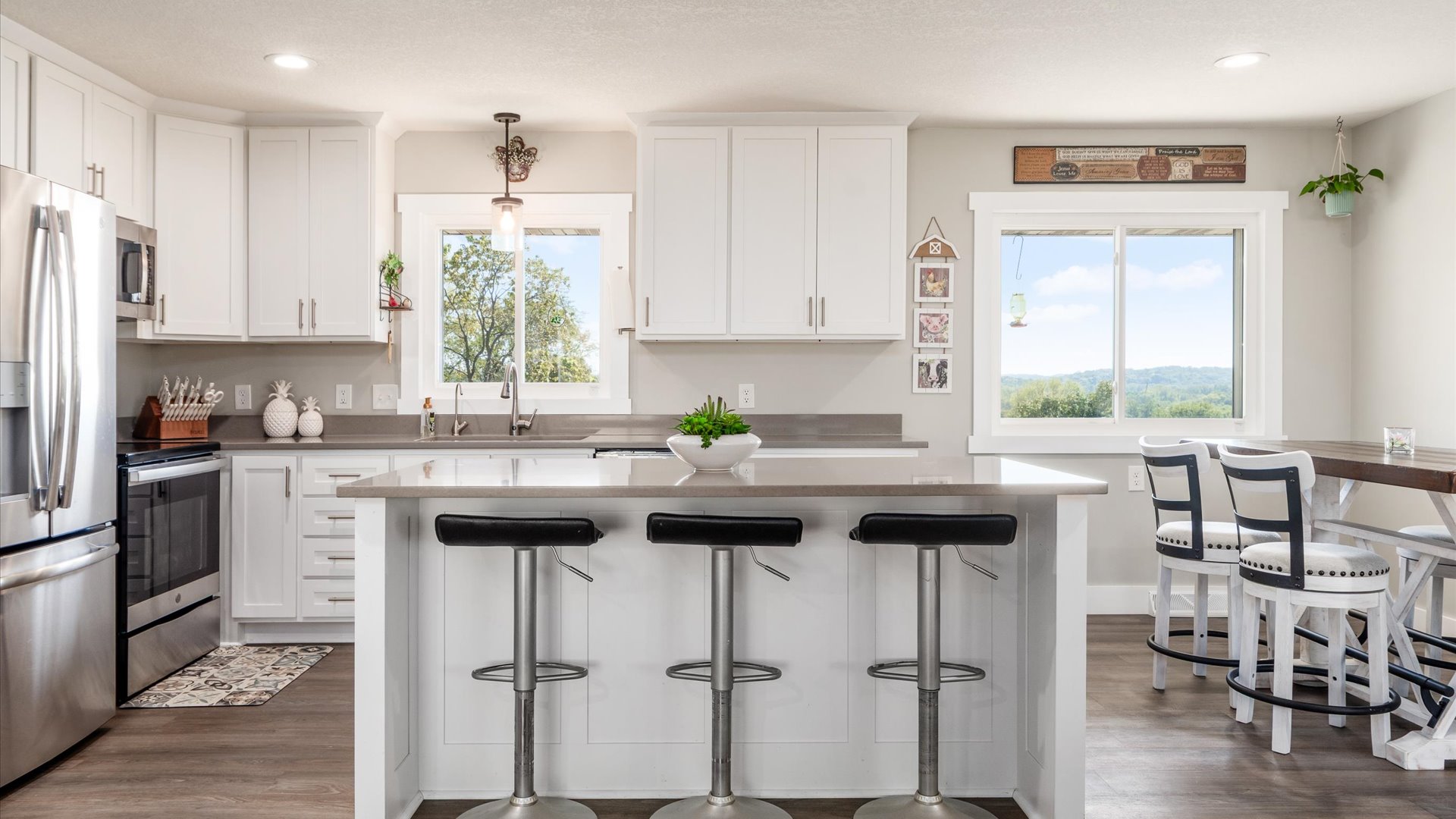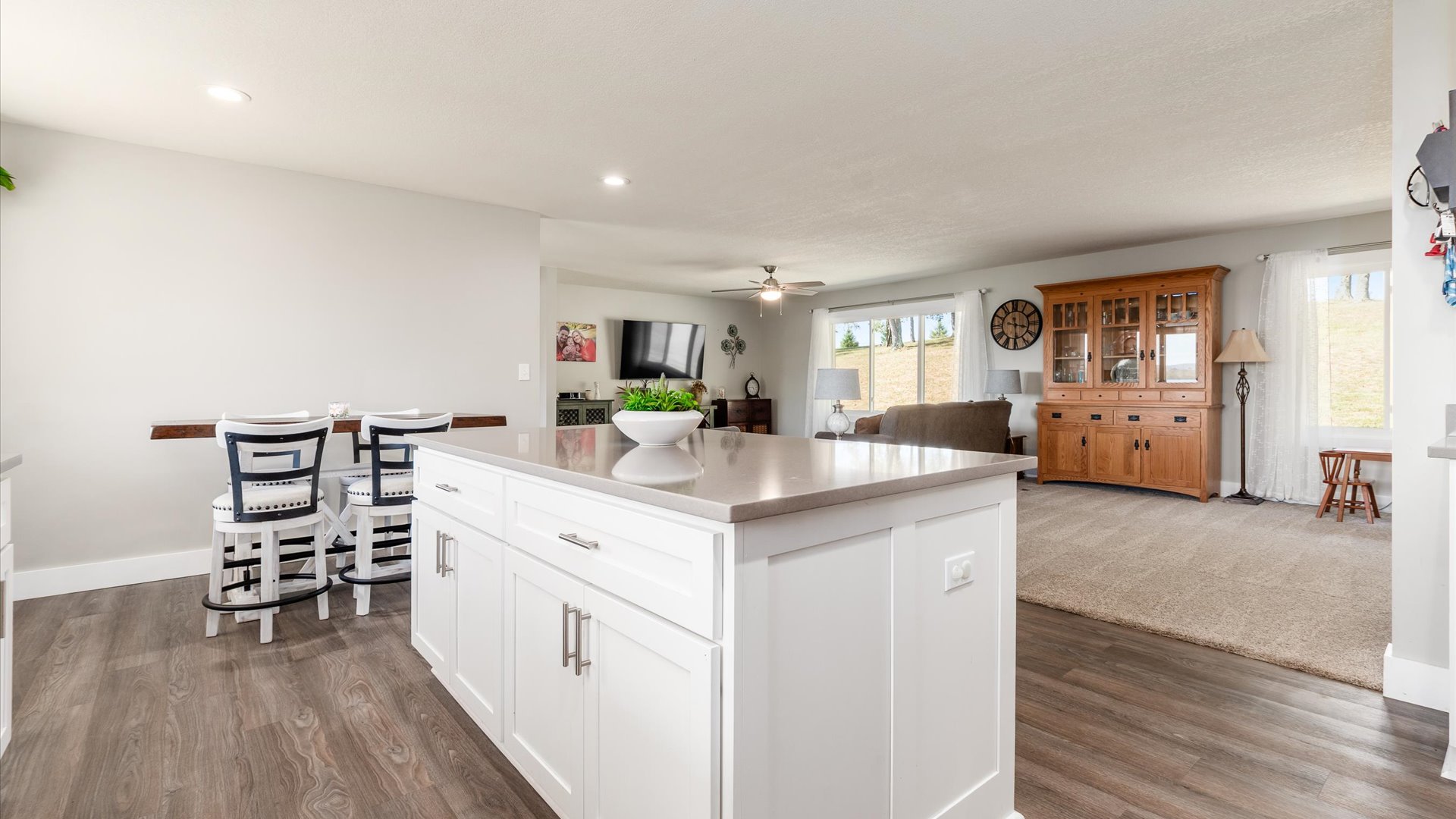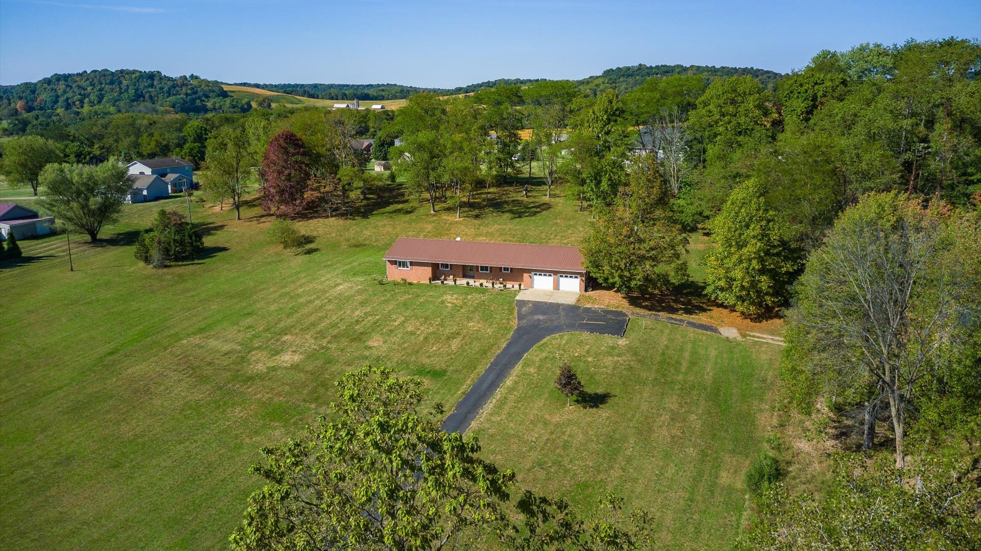 Welcome to this beautifully remodeled home set on 5.38 acres in the desirable Licking Valley Schools district. Perfectly positioned to take in sweeping views of the distant rolling hills, this property offers both modern comfort and a serene country setting. The home has been thoughtfully updated throughout, featuring an open floor plan designed for today's lifestyle. Nearly every detail has been refreshed, including newer doors, windows, trim, flooring, furnace, AC, hot water heater, and kitchen appliances. The heart of the home is the stunning, completely remodeled kitchen boasting a spacious island, abundant cabinetry, and stylish finishes. A new mudroom area adds convenience and functionality, while the updated bathrooms impress with handcrafted cabinets, new tile, and high-quality lighting and plumbing fixtures. Every space reflects craftsmanship and attention to detail. Outdoor living is equally inviting. Enjoy awe-inspiring views from the covered front porch, or retreat to the covered back patio, a perfect spot for relaxing or entertaining while overlooking the gently rolling grounds. Additional updates include a new well pump and pressure tank, reverse osmosis, and water softener system, plus an invisible fence that secures four of the five acres for pets to roam freely. Whether you are seeking peaceful country living, modern amenities, or a place to simply enjoy nature's beauty, this property delivers it all. Move-in ready, meticulously cared for, and set in a picturesque location, this home is a rare find that perfectly blends comfort, quality, and breathtaking views.